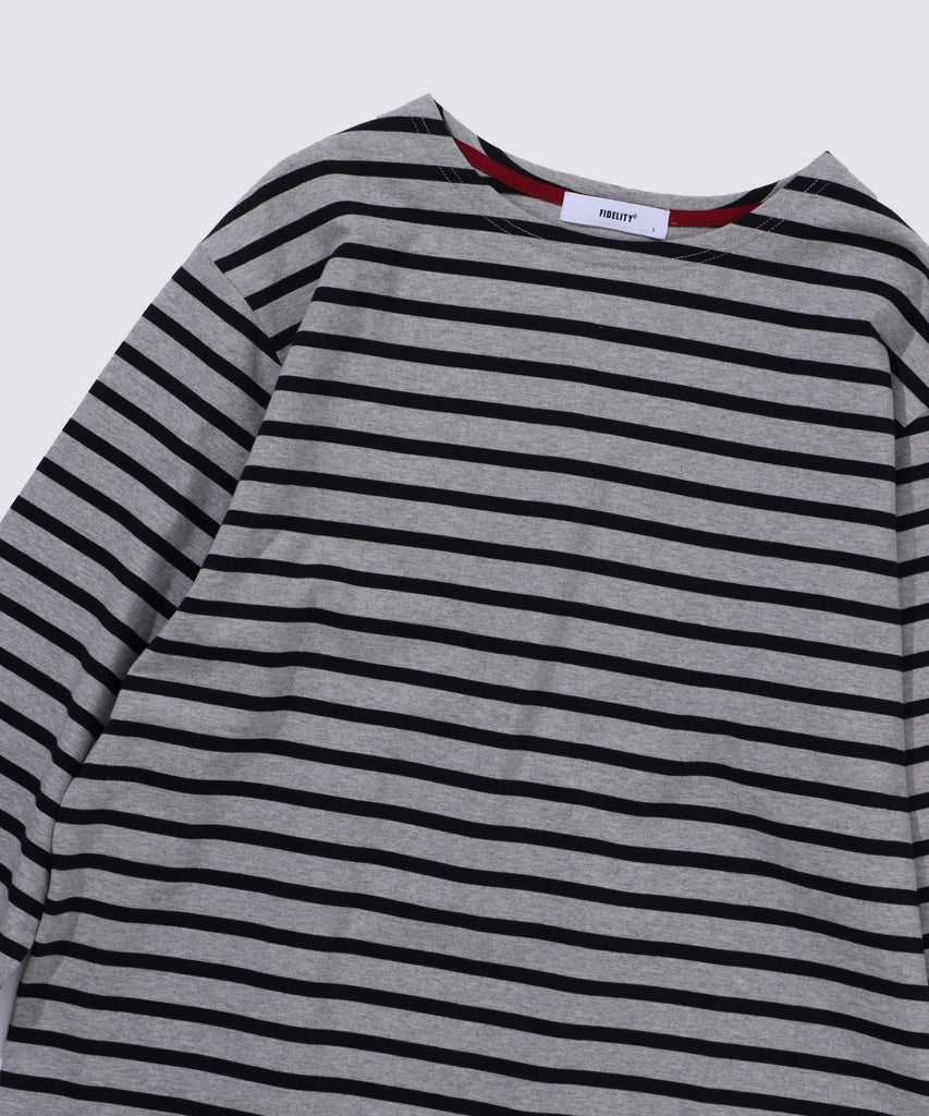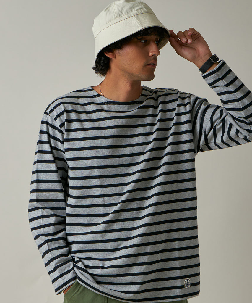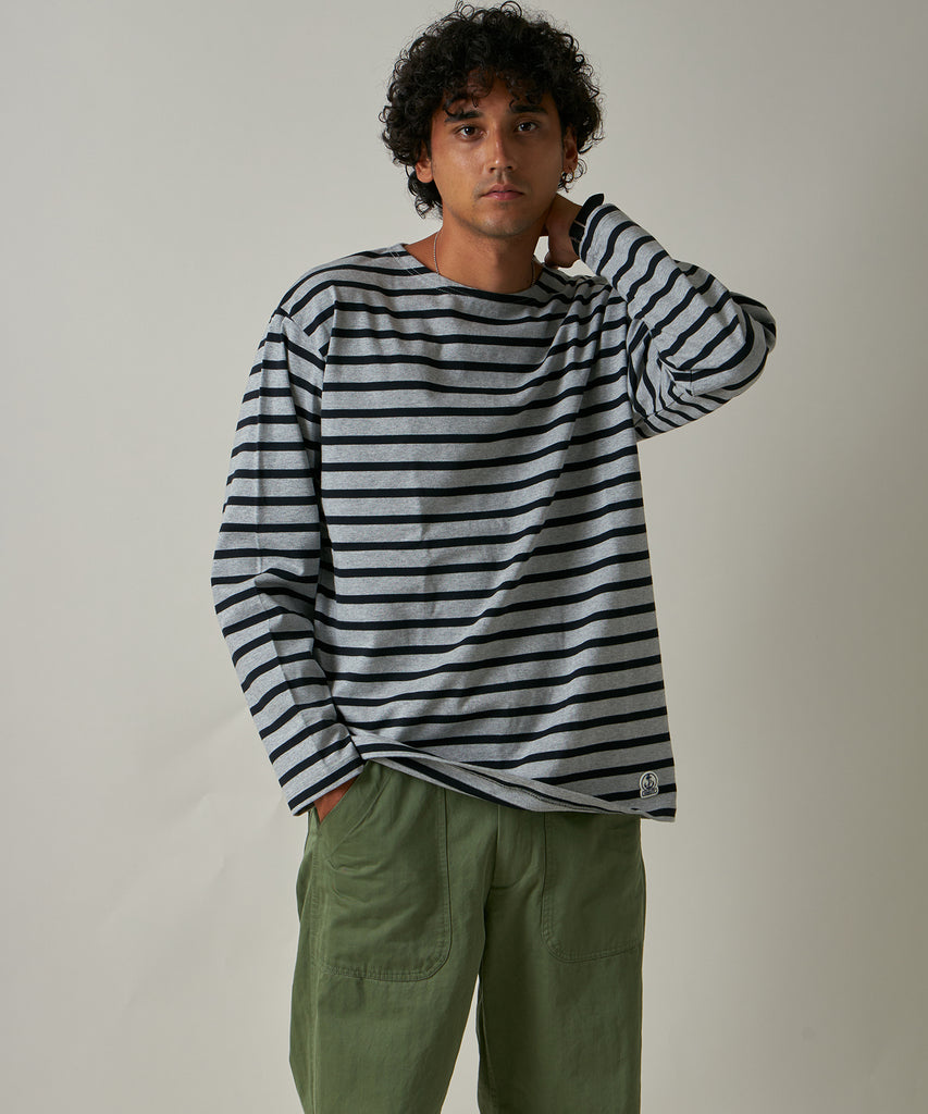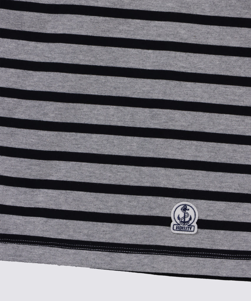 24番手2本使いのヘビーウエイト天竺編みのカットソー地のボーダー。双糸を使用しているので、しっかりとした肉感でありながら、上品な印象に仕上がっています。