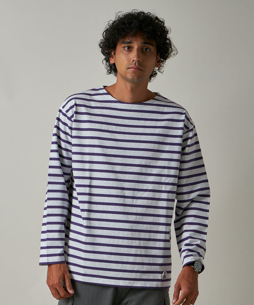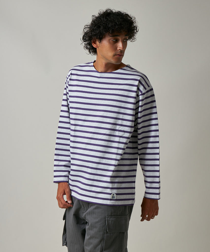 BORDER L/S REGULAR (Oatmeal×Purple)