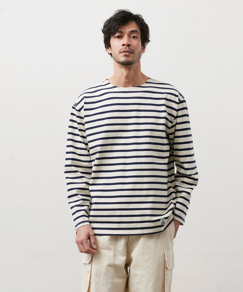 BORDER L/S REGULAR 1 (Natural × Navy)