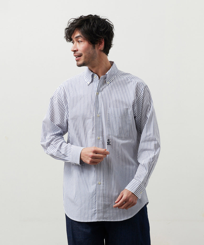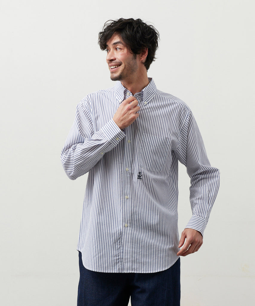 ・胸ポケット下の刺繍がポイントのボタンダウンシャツ。
