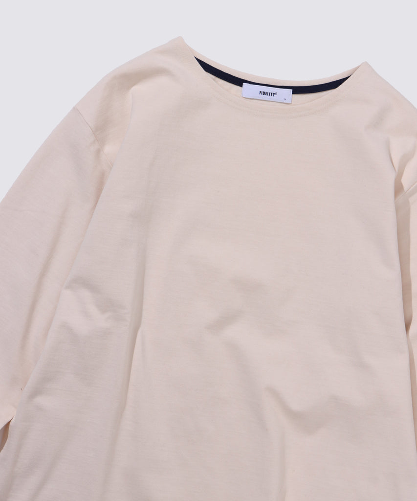 ・ボートネックの衿ぐりは、浅めで首もとが開きすぎないサイズで設計しているので、クセがなく大人っぽく落ち着いた雰囲気に。