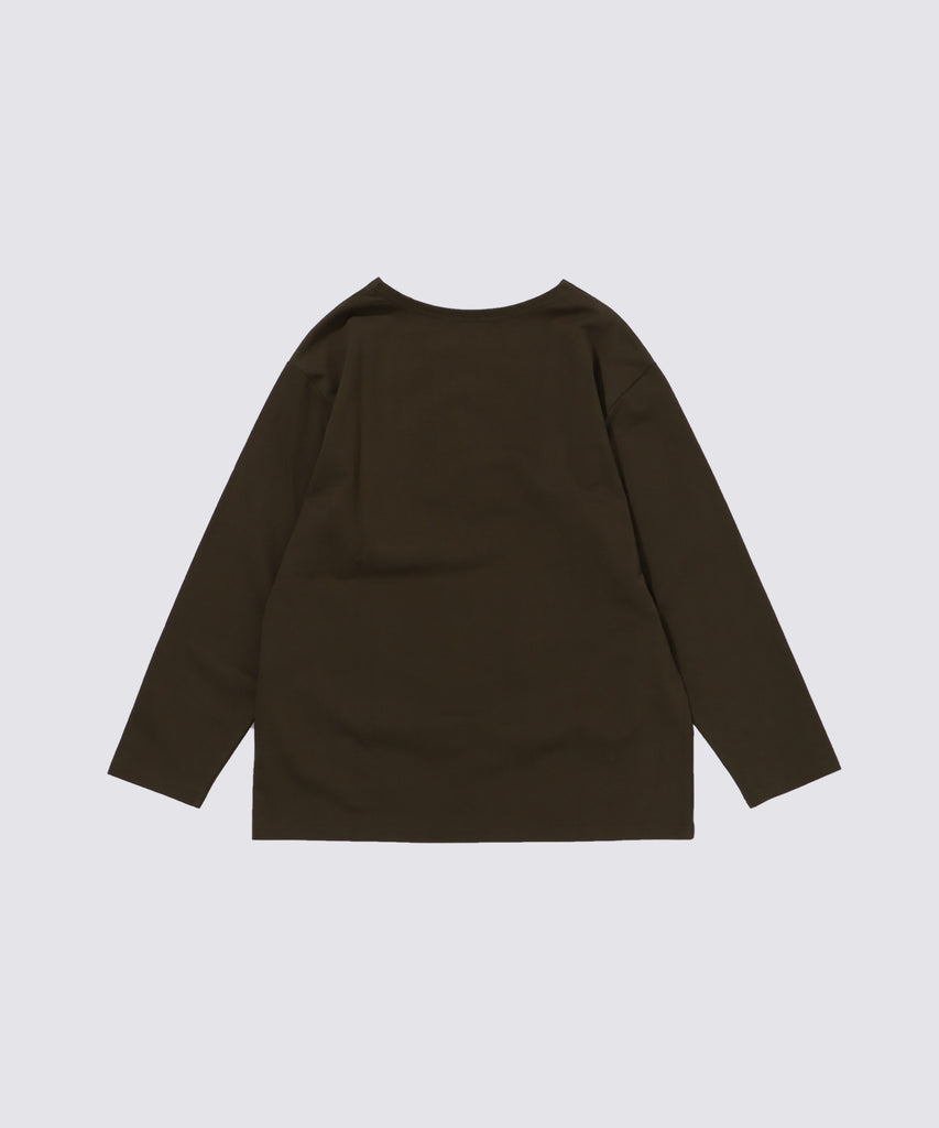・ボートネックの衿ぐりは、浅めで首もとが開きすぎないサイズで設計しているので、クセがなく大人っぽく落ち着いた雰囲気に。