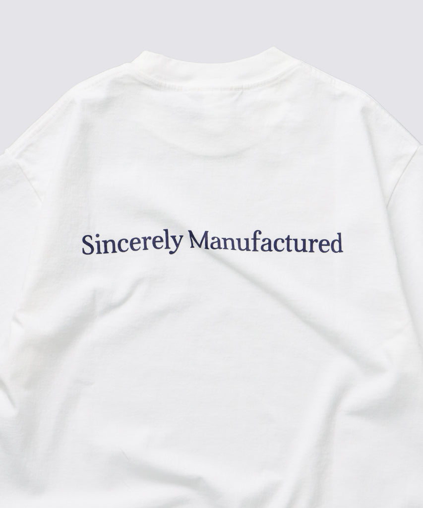 ブランドのクラフトマンシップを象徴する「Sincerely Manufactured」のメッセージをバックに控えめに配した、シンプルながら品のあるデザインが魅力です。