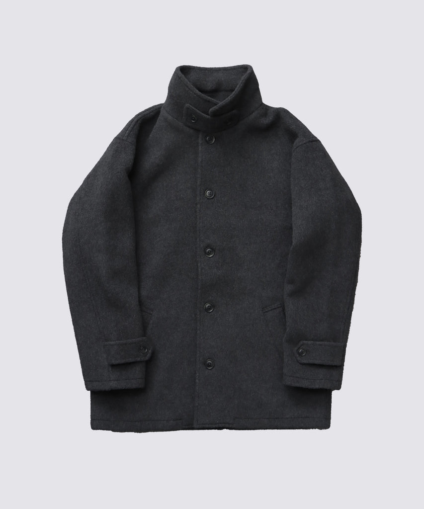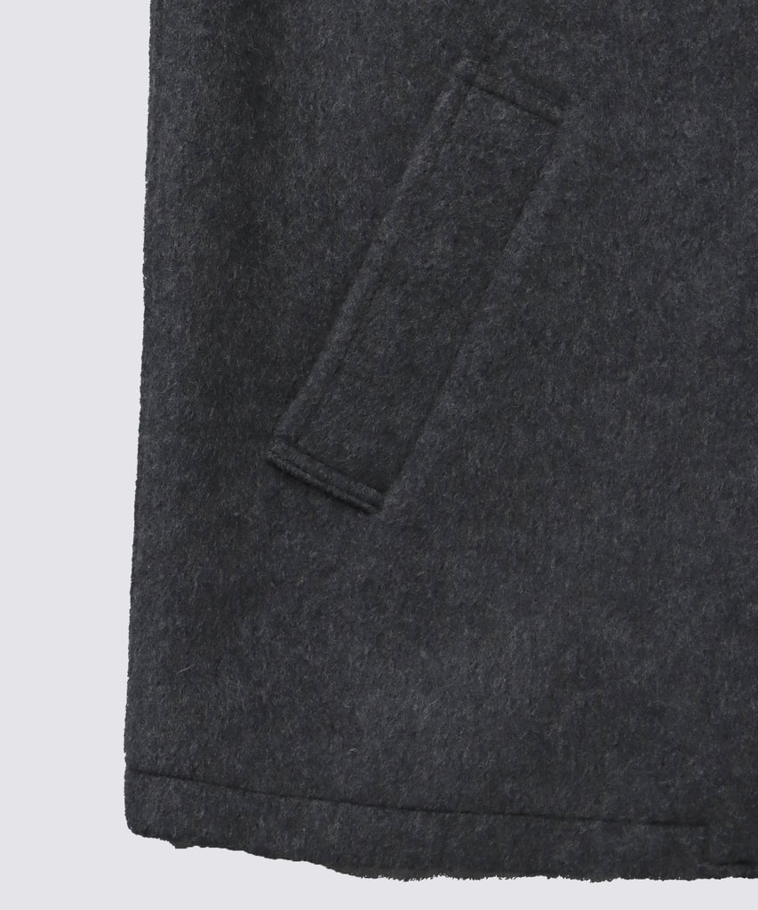 一般的なピーコートとは一線を画す、モダンかつ洗練された印象に仕上がっています。