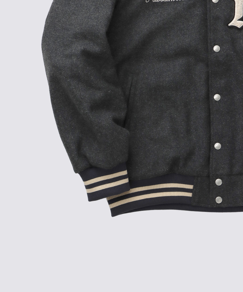 裏地にはサテン生地を採用し、滑りの良さと保温性を両立。クラシックなグラデーションリブと、両胸の刺繍&ワッペンがデザインのアクセントになっています。内側にはブランドオリジナルのミルスペックタグを縫い付け、細部までヴィンテージの空気感を演出。軽く羽織るだけでスタイルが決まる一着は、スポーティーでありながらも大人の品を感じる仕上がりとなっています。