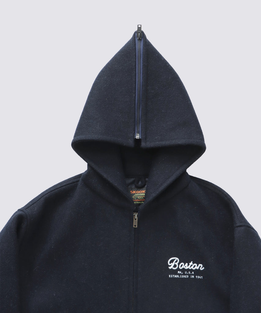 ・スタジアムジャンパーの雄である「SKOOKUM/スクーカム」とのコラボで生まれた一着。