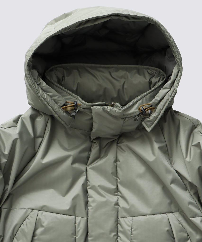 ・アウトドアシェラフメーカーNANGAに、ミリタリーの防寒アウターとして近年人気のPCU LEVEL7 TYPE1型をベースとしたオリジナルアウターでコラボ。同じLEVEL7シリーズのハッピーJKT、モンスターパーカーに比べてショート丈で女性にもおすすめ。