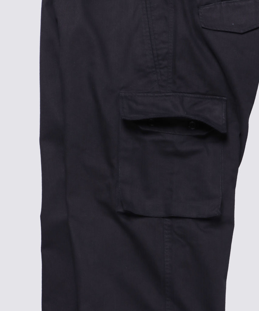 存在感のある大きめのフラップポケットやタブ付きのウエストなど、ミリタリーの機能美を活かしたディテールを忠実に再現しています。