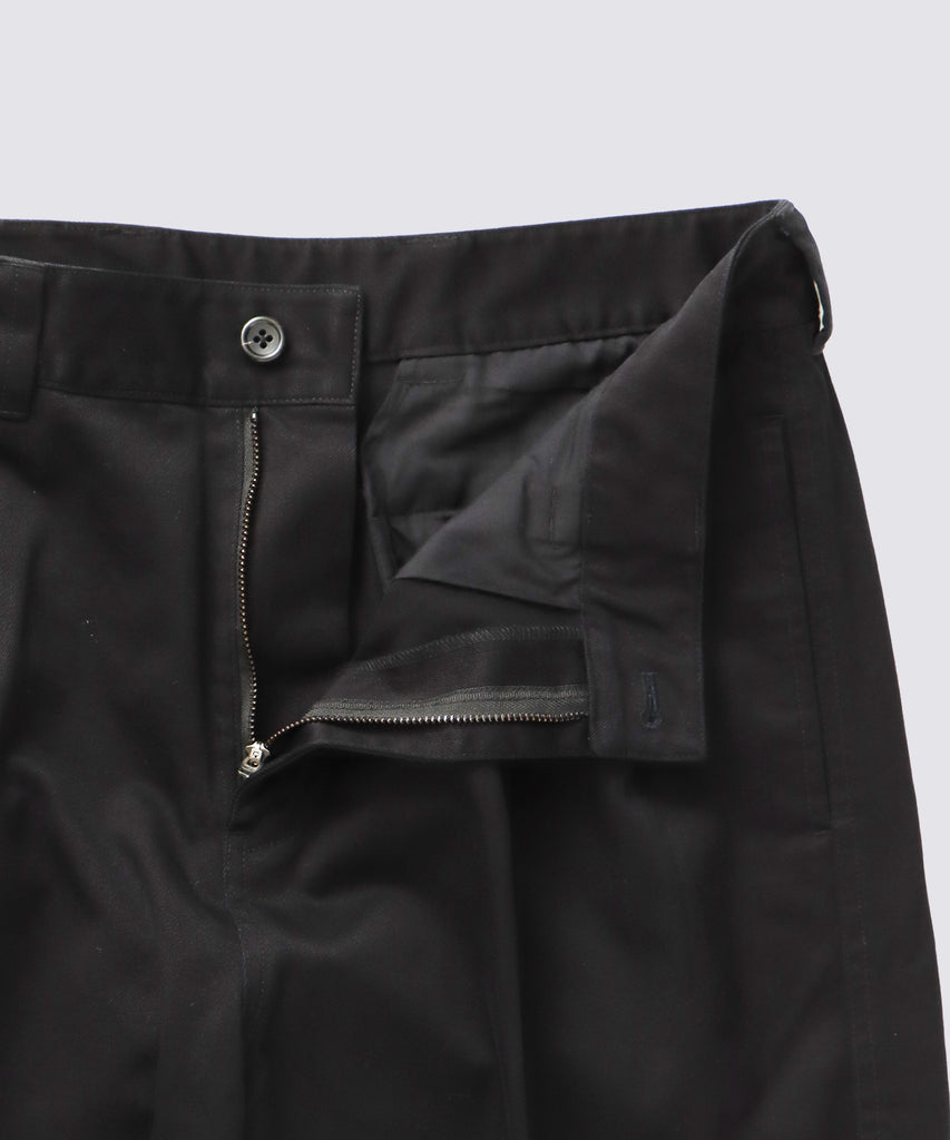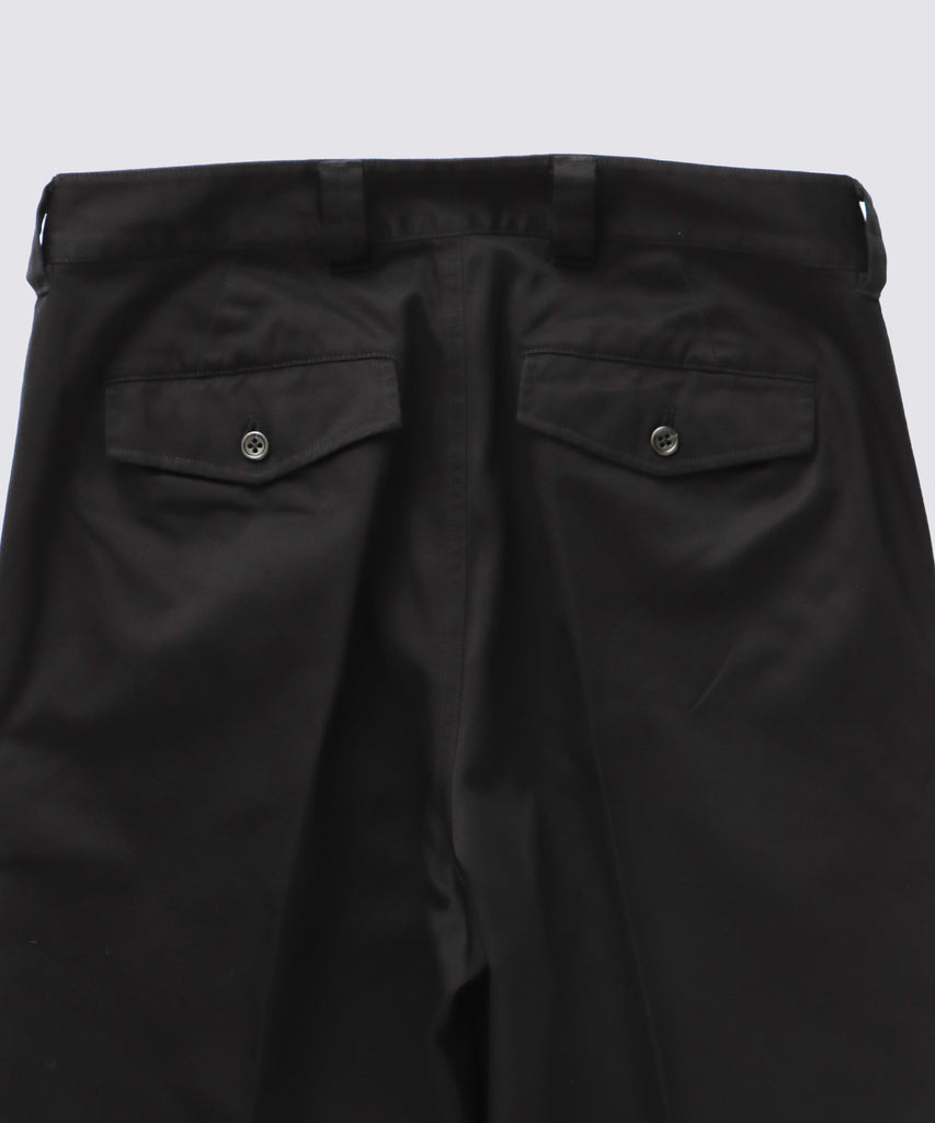 フランス軍のM52チノトラウザーズをベースに、現代的なフィット感とシルエットで再構築した2タック仕様のツイルパンツです。 程よくボリュームのある腰まわりから、裾にかけて落ちるきれいなテーパードラインが特徴で、品のあるミリタリースタイルを演出します。