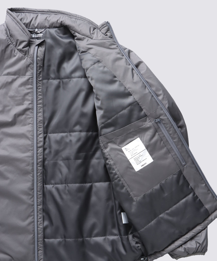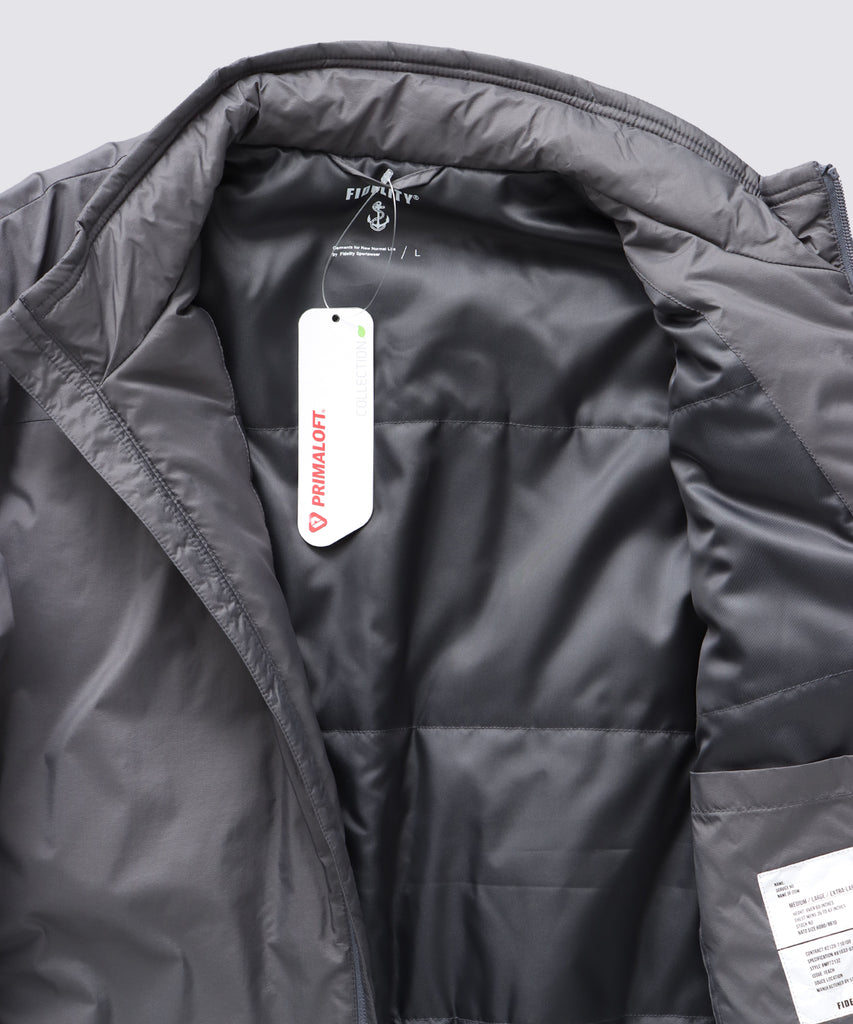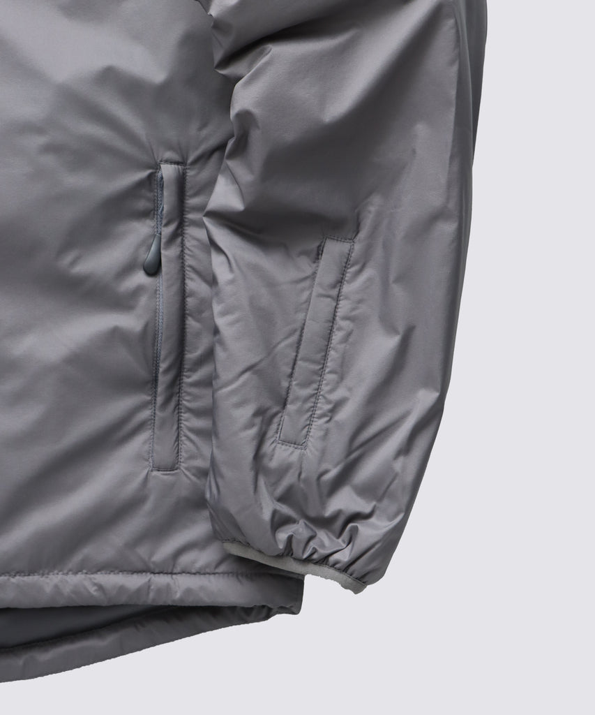 中綿には、米軍や海軍の寒冷地用ウェアでも採用される**超微細繊維マイクロファイバー「PRIMALOFT®」**を使用。